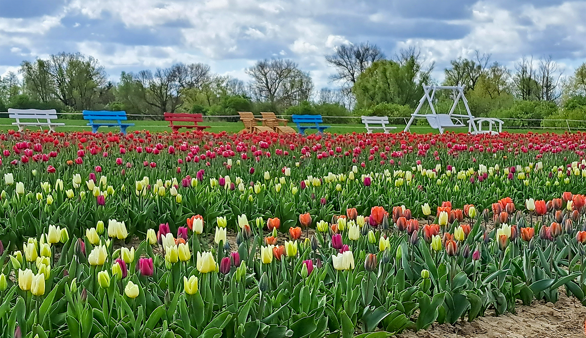 Ogród jest otwarty przez 2-3 tygodnie od momentu rozpoczęcia kwitnięcia tulipanów (kwiecień)